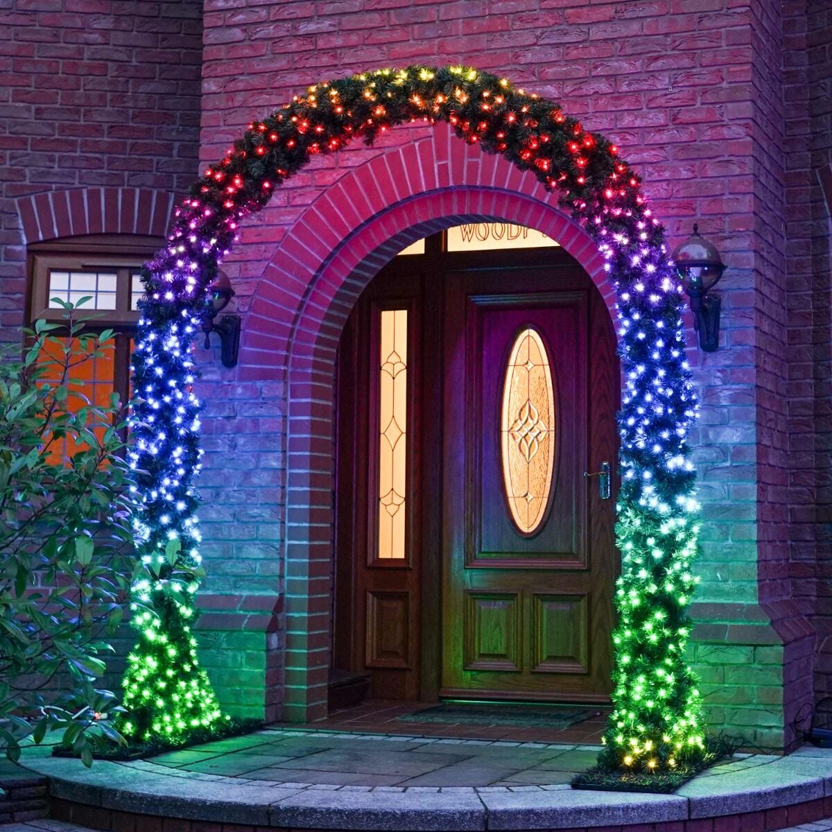 Brand new and exclusive to Festive Lights, the arch is surrounded by over 21,000 individual PVC tips and 900 smartphone-controlled LED Twinkly lights, guaranteed to change your Christmas lighting display forever. Standing at a staggering 8ft tall, this full foliage effect archway has been masterfully crafted using only the strongest and most reliable steel and has been embedded with Twinkly’s industry leading bright RBG LEDs, revolutionary app, and numerous colour and effect options.