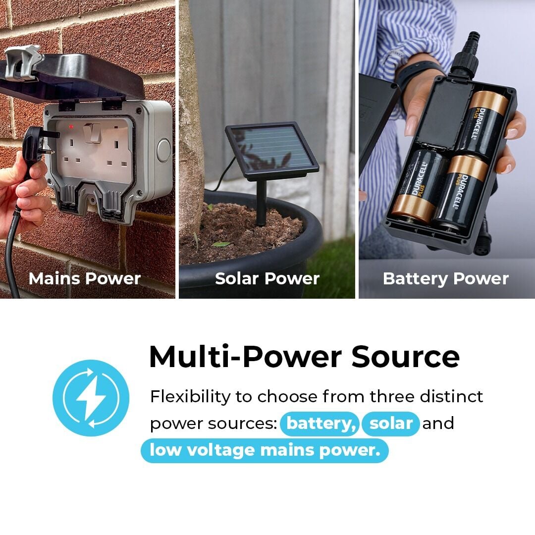 These low voltage festoon lights are part of our cutting edge ConnectGo range, which boasts impressive versatility in its interchangeable power sources. These multi-power source lights can be powered by either mains, using the latest digital 31V transformer, by battery when mains power is not available or seasonally by solar panel.