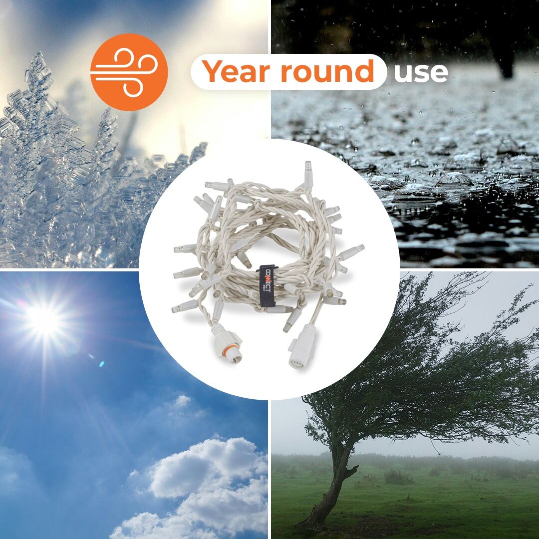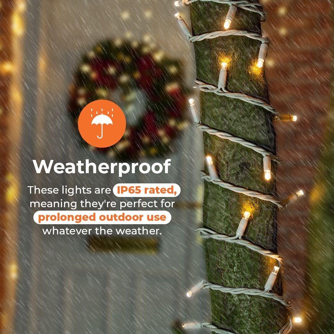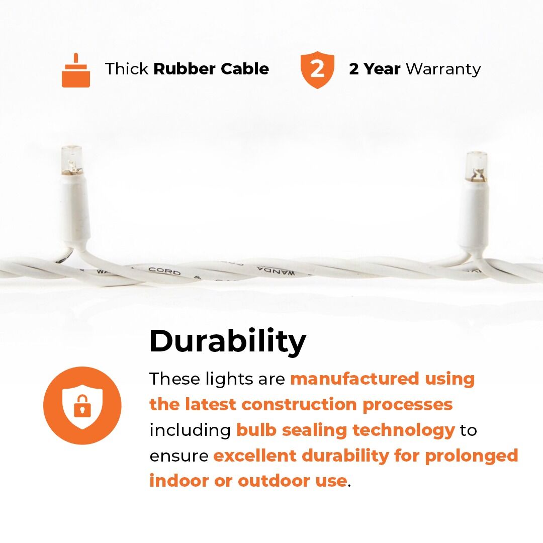 These lights are manufactured using the latest construction processes, including bulb sealing technology, to ensure excellent durability for prolonged indoor or outdoor use. Our high quality LED string lights have unlimited uses, perfect for trees, fences, bushes, buildings and more.